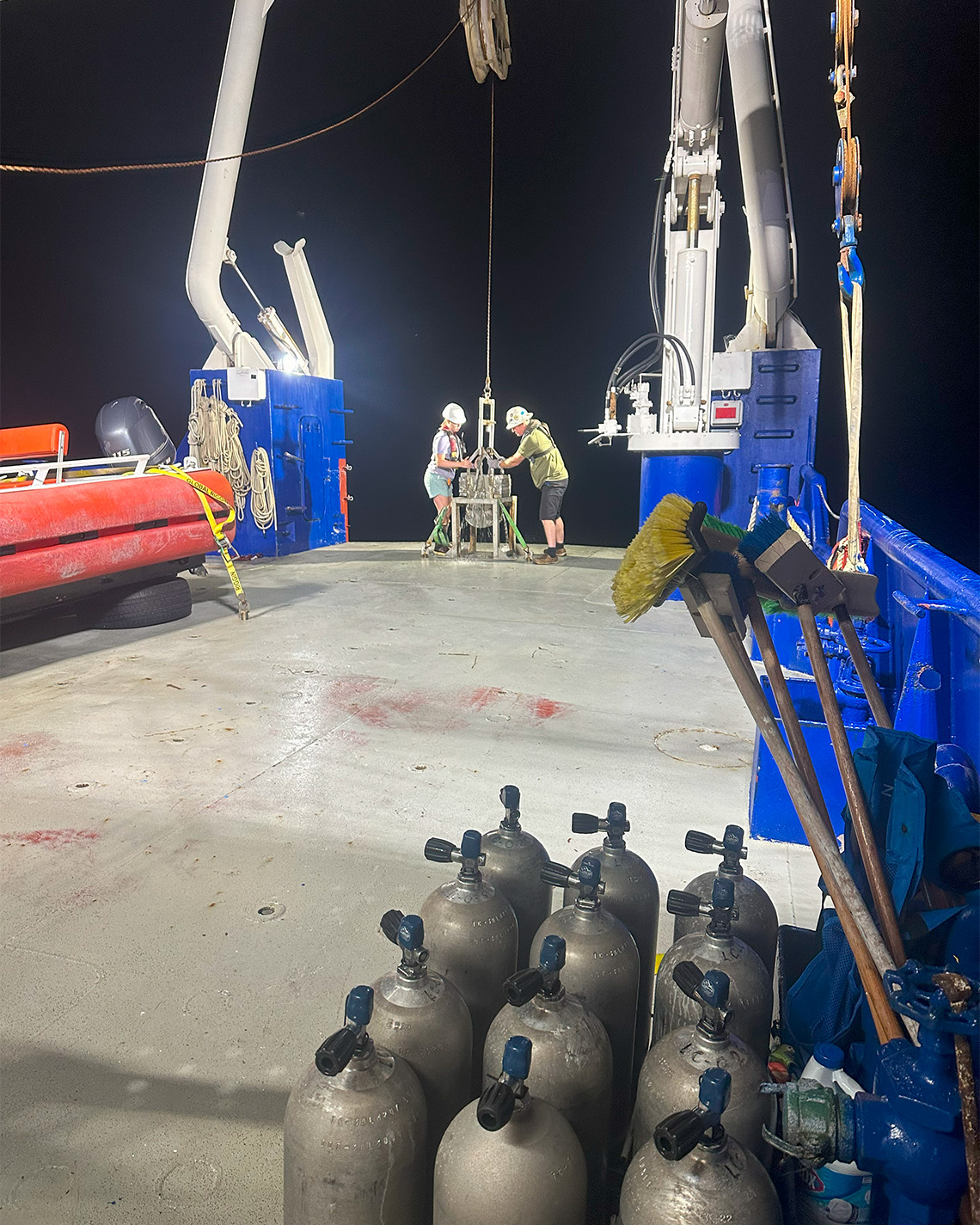 Worley and Dr. Sophia Jurgensen work to prepare a niskin bottle for deployment