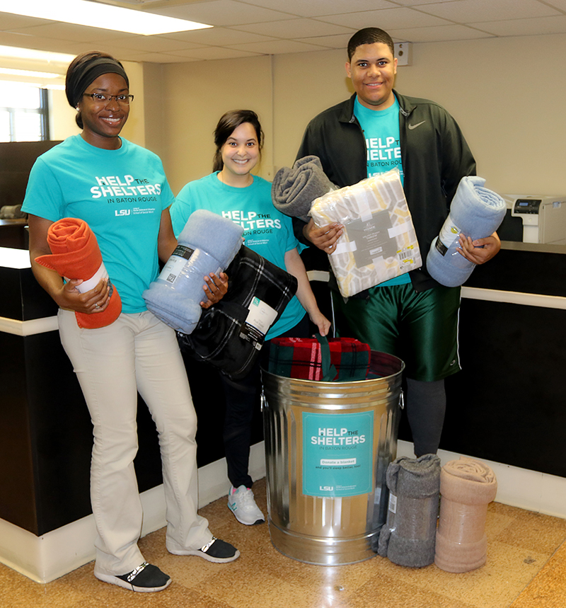 Baton Rouge, LA 70803 Or you can purchase a blanket at a local store and drop it off at 313 Huey P. Long Field House on LSU's campus. Volunteers will continue to bring donated blankets to area shelters during the holiday season.