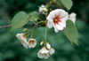 Identification: Showy white flowers with red center in spring; ovate leaf, dark green and glossy; applelike drupe with a thick husk.