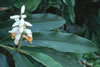 -Flowers on drooping panicles, pearly-pink bract resembles a shell, white flowers fringed with yellow and red