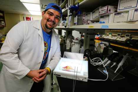 Link Morgan, undergraduate biology student with a stained fish from