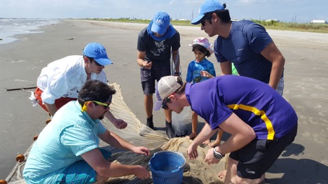 Prosanta Chakrabarty and a team of researchers collect specimens on a public beach